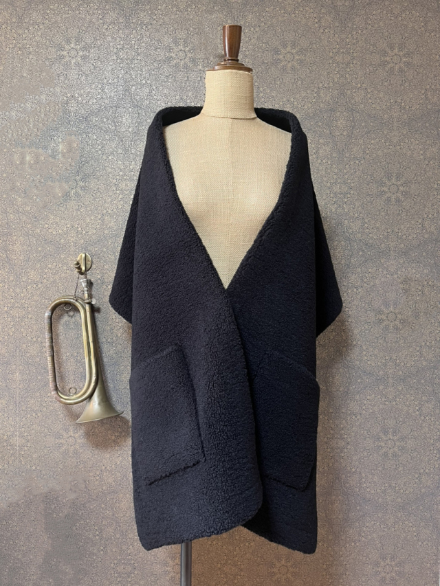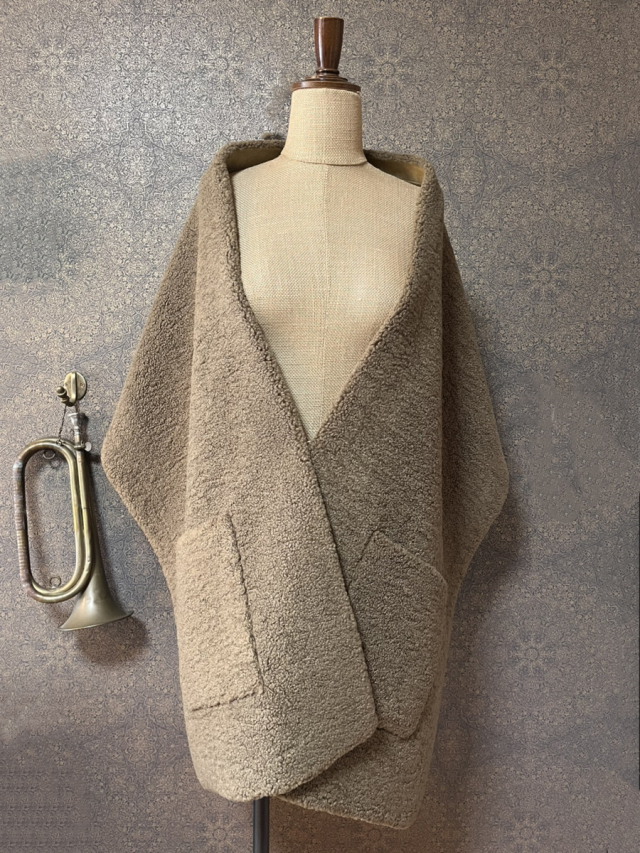 ケープのように羽織れるデザインが魅力のビッグストール。 柔らかく上品なキレイめボア生地を使用し、ストール感覚で使えるのに、アウターライクな存在感も兼ね備えた一枚です。 フロントはフック仕様になっており、留めてケープ風に着用したり、ラフに羽織ったりとアレンジ 自在。 大きめのポケットはスマートフォンや小物も収納でき、さっとお出かけする時にも便利です。 立体感のあるシルエットと大きめポケットがアクセントになり、いつものコーデにさっとプラスするだけでこなれた印象に。 春先までロングシーズン活躍します。 カラーはシックで合わせやすいブラックと、柔らかく上品な印象のブラウンの2色展開です。