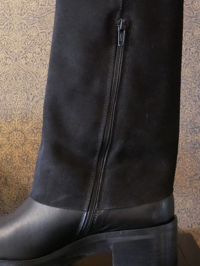 Lilimill カーフレザー×スウェード配色ラウンドトゥ・ロングブーツ